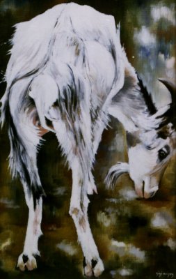 Geitje langs de dijk, olieverf op linnen, 50 x 70 cm.