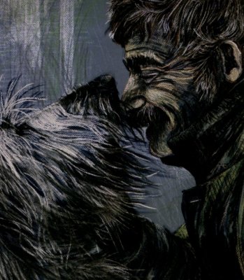 Man met hond, gouache/krijt, 50 x 60 cm.