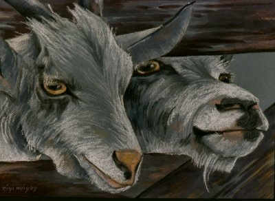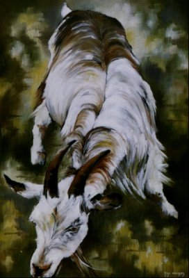 Het geitje van Sien, olieverf op linnen, 50 x 70 cm.