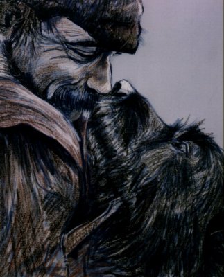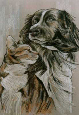 Vrienden, houtskool/pastel, 50 x 60 cm.