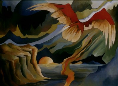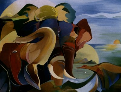Ontmoeting met mijzelf, olieverf op linnen, 70 x 100 cm.